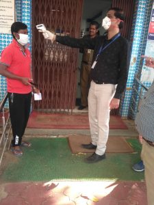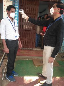 बैंक शाखा में स्टाफ एवं ग्राहकों का थर्मल स्कैनर से स्क्रीनिंग