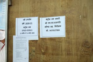 जिला आपूर्ति अधिकारी प्रमोद श्रीवास्तव ने बताया कि सहायक आयुक्त सहकारिता के कार्यालय कक्ष क्रमांक 115 में स्थापित कन्ट्रोल रुम का दूरभाष 07622-222611 है। कन्ट्रोल रुम में समन्वय के लिये वरिष्ठ सहकारिता निरीक्षक एस0एन0 प्रजापति मोबाईल नंबर 9479527884 को नियुक्त किया गया ळै। कन्ट्रोल रुम में पंजी का संधारण कर भोपाल के कन्ट्रोल रुम दूरभाष क्रमांक 0755-2551471 से समन्वय रखा जा रहा है। कन्ट्रोल रुम प्रतिदिन प्रातः 9.30 बजे से शाम 5.30 बजे तक संचालित रहेगा।