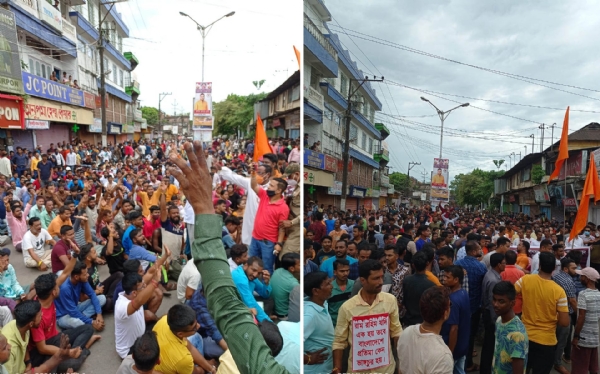 करीमगंज जिले में विरोध मार्च एओसी प्वाइंट और स्टेशन रोड, ब्रिज रोड, कालीबाड़ी रोड से होकर बांग्लादेश सीमा पर कुसियारा नदी के विसर्जन घाट तक गया। इस कार्यक्रम में राष्ट्रीय स्वयंसेवक संघ, बजरंग दल और भाजपा के करीमगंज जिले के पदाधिकारियों के साथ ही अन्य संगठनों के कार्यकर्ताओं ने हिस्सा लिया।