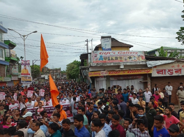 बांग्लादेश में हिंदू मानबिंदुओं पर हमले के विरोध में असम में विहिप का प्रदर्शन