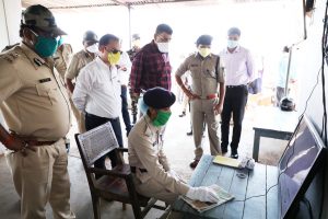 कटनी – कमिश्नर जबलपुर संभाग महेश चन्द्र चौधरी और पुलिस महानिरीक्षक बी0एस0 चौहान ने शनिवार को कटनी जिले के भ्रमण के दौरान जबलपुर मार्ग पर छपरा में स्थापित पुलिस चैकपोस्ट नाके का निरीक्षण किया। इस दौरान उन्होने एसडीओपी स्लीमनाबाद क्षेत्र और बहोरीबंद क्षेत्र के चैकपोस्ट नाकों पर तैनात पुलिस कर्मियों के लिये कोरोना संक्रमण से बचाव के लिये 20 नग पीपीई किट और 2 थर्मल स्कैनर वितरित किये। इस मौके पर कमिश्नर श्री चौधरी और आईजी श्री चौहान ने छपरा चैकपोस्ट पर लगाये गये सीसीटीवी के 4 कैमरों की सतत् निगरानी के लिये स्थापित कन्ट्रोल रुम का भी निरीक्षण किया। इस मौके पर डीआईजी मनोहर वर्मा, कलेक्टर शशिभूषण सिंह, पुलिस अधीक्षक ललित शाक्यवार, एसडीएम रोहित सिसोनिया, एसडीओपी पी0के0 सारस्वत भी उपस्थित थे।
