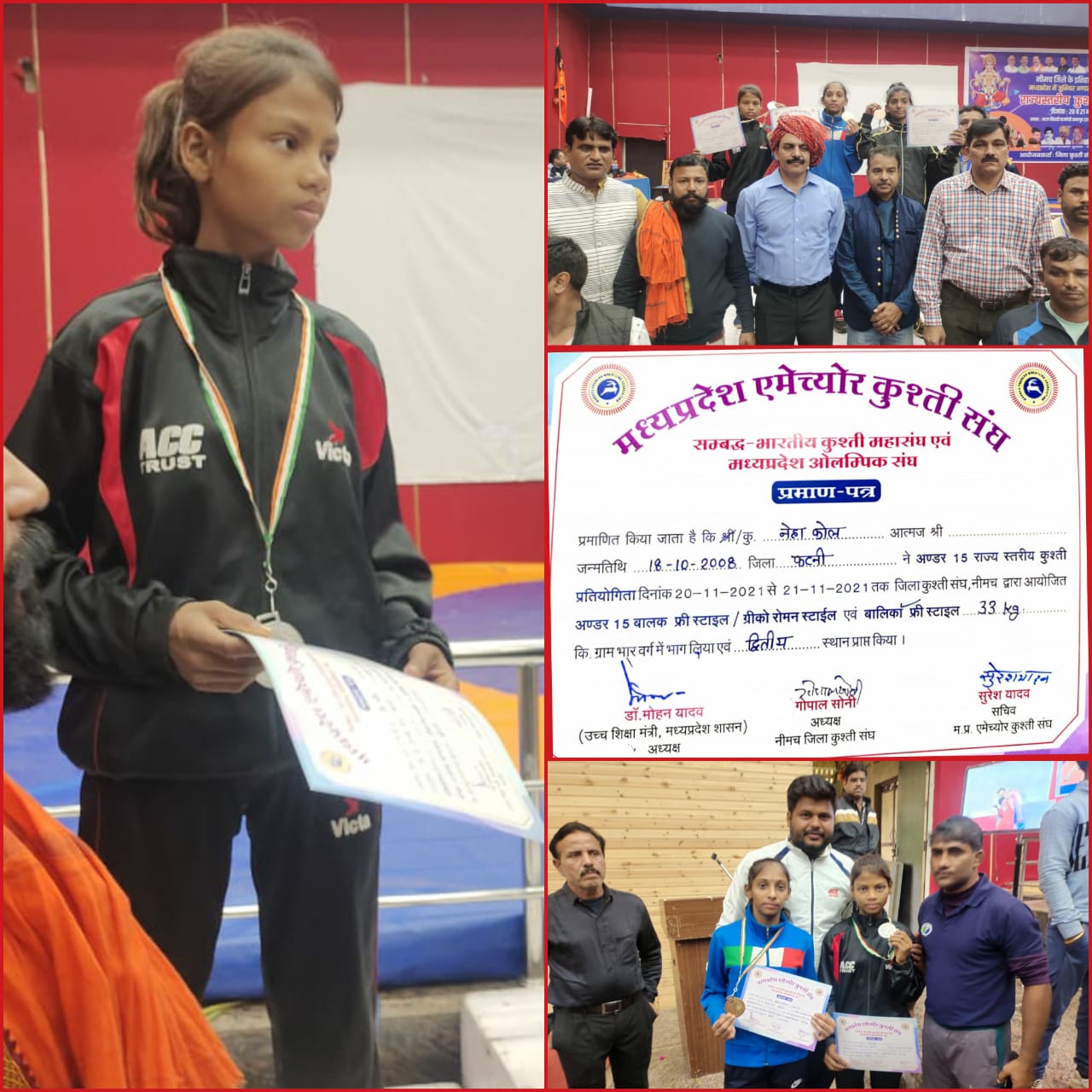एसीसी सीएसआर से प्रशिक्षण प्राप्त नेहा कोल ने कुश्ती में जीता राज्यस्तरीय रजत पदक