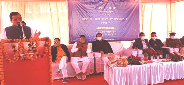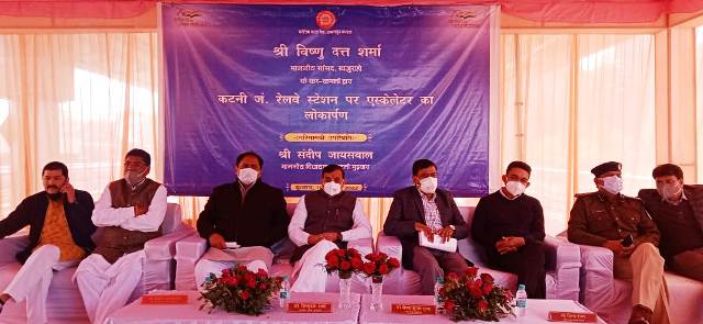 कटनी मुख्य रेलवे स्टेशन में एस्केलेटर का खजुराहो सांसद वीडी शर्मा ने किया शुभारंभ