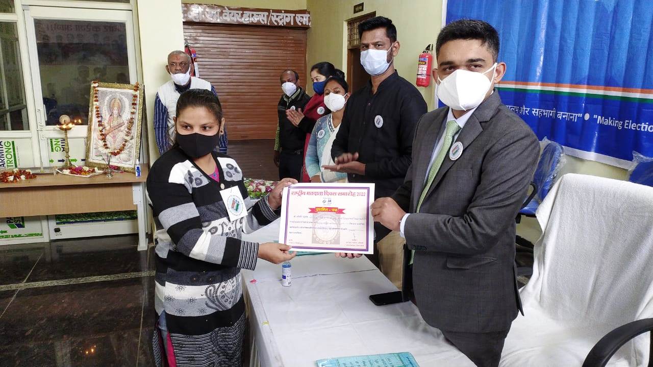 नए मतदाताओं को भेंट किए कार्ड, निबंध लेखन के प्रतिभागी भी सम्मानित