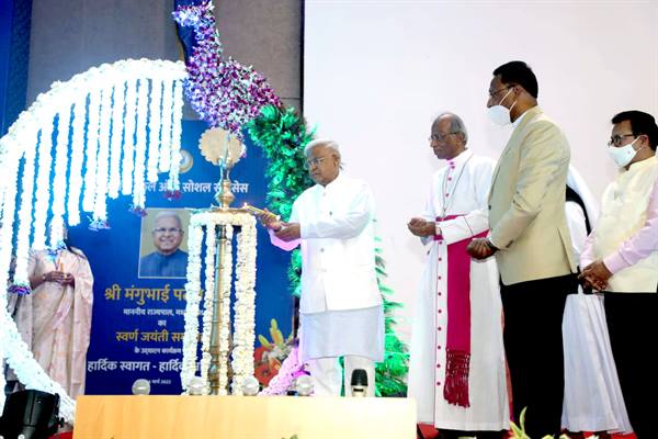 राज्यपाल श्री मंगुभाई पटेल ने कहा कि जीवन में सफलता के लिए ज्ञान के साथ संवेदनशीलता भी ज़रूरी है। भौतिक सुखों की प्राप्ति के अनेक साधन हो सकते हैं, लेकिन आत्मा का संतोष और आत्मिक शांति प्राप्त करने का सबसे प्रभावी तरीका जरूरतमंद की सेवा है। उन्होंने शिक्षकों से अपेक्षा की है कि छात्र-छात्राओं को समाज में अच्छे नागरिक के रूप में पहचान बनाने के लिए अनुशासन और संस्कारों के साथ स्वावलंबन के द्वारा आत्म-निर्भर भारत निर्माण को प्रेरित करें। उनमें मूल्यों, मानकों एवं उत्तरदायित्वों की गम्भीरता के भाव भरकर, समाज राष्ट्र में सेवा के लिए संकल्पित करें ताकि विद्यार्थी जीवन के जिस क्षेत्र में जाएँ, नए आयाम स्थापित करें। देश-प्रदेश के निर्माण में अपना सर्वश्रेष्ठ योगदान दें। अपने व्यवहार और कार्यों से महाविद्यालय परिवार, समाज और देश-प्रदेश का नाम रोशन करेंगे। उन्होंने स्वर्ण जयंती समारोह में छात्र-छात्राओं को अपने देश की संस्कृति और कला से रू-ब-रू कराने के प्रयास करने के लिए कहा, जिससे युवा पीढ़ी देश के गौरवमयी इतिहास, शैक्षणिक, आर्थिक समृद्धियों से परिचित हो। साथ ही सशक्त राष्ट्र के परतंत्र होने के कारणों और उससे मुक्ति के लिए किए गए संघर्ष और बलिदानों की गाथाओं से प्रेरणा लेकर नव राष्ट्र निर्माण के लिए प्रतिबद्ध हो।