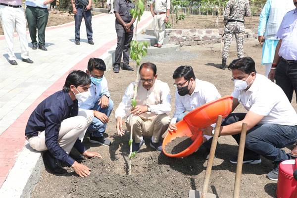मुख्यमंत्री शिवराज सिंह चौहान ने स्मार्ट उद्यान में पिंक केसिया और करंज के पौधे लगाए