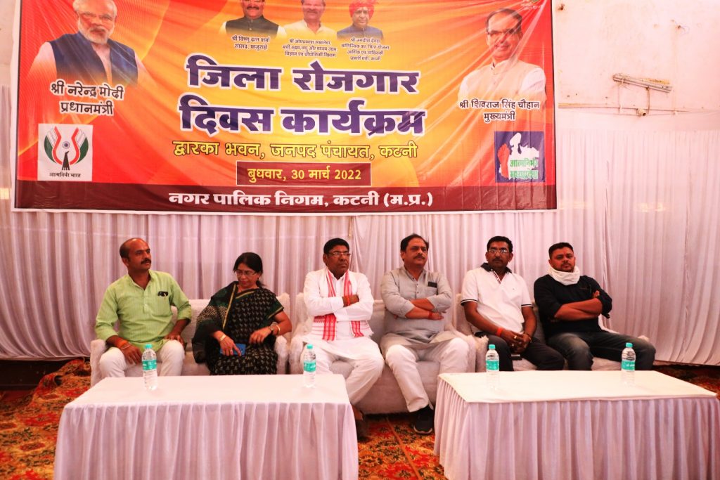 (कटनी) – लोगों को स्व रोजगार से जोड़ने के लिए हर माह रोजगार दिवस कार्यक्रम का आयोजन किया जा रहा है। जिसके अंतर्गत बुधवार को द्वारका भवन में जिला स्तरीय रोजगार दिवस कार्यक्रम का आयोजन किया गया। कार्यक्रम में अतिथि के रूप में विधायक मुड़वारा संदीप जायसवाल, जिला पंचायत प्रशासनिक समिति प्रधान ममता पटेल, जनपद पंचायत कटनी प्रशासनिक समिति प्रधान शैलेष कन्हैया तिवारी, भाजपा जिलाध्यक्ष रामरतन पायल, कलेक्टर प्रियंक मिश्रा, जिला पंचायत सीईओ जगदीश चंद्र गोमे उपस्थित रहे।