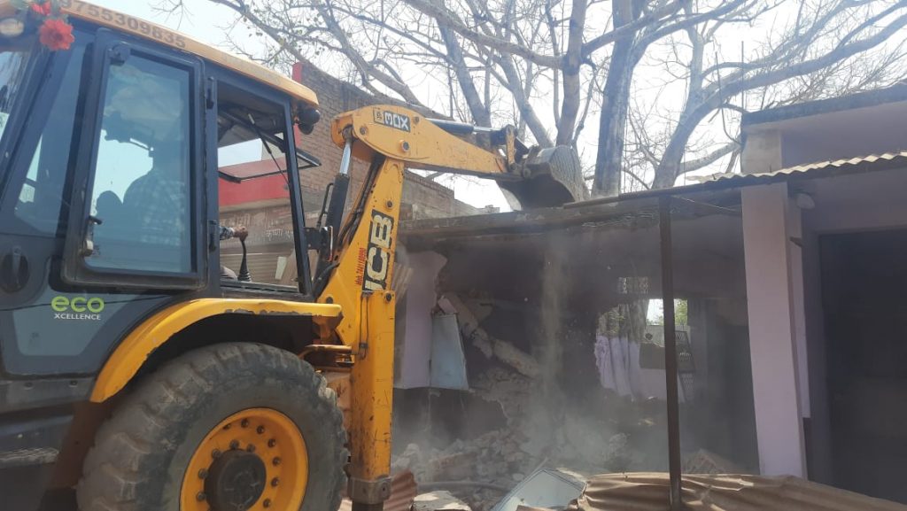 (कटनी) – कलेक्टर प्रियंक मिश्रा के निर्देश पर शहर के संजय नगर अमीरगंज में जिला प्रशासन की टीम ने आदतन अपराधी अशोक यादव के अवैध निर्माण और अतिक्रमण को बुलडोजर से जंमीदोज कर दिया। शासकीय नजूल भूमि पर अवैध अतिक्रमण हटाने की कार्रवाई के दौरान पूरे समय मौके पर मौजूद रहीं एसडीएम प्रिया चन्द्रावत ने बताया कि अमीरगंज निवासी अशोक यादव पिता रोहतास यादव ने नजूल की भूमि पर अवैध कब्जा कर मकान बना दिया था। साथ ही अशोक यहां से अवैध रुप से शराब की बिक्री भी करता था। इसके विरुद्ध भारतीय दण्ड संहिता के तहत 10 अपराध और आबकारी एक्ट की विभिन्न धाराओं के तहत माधवनगर थाने में एफआईआर दर्ज हैं। अशोक के खिलाफ पुलिस थाने में भारतीय दण्ड संहिता की धारा 386, 506, 294, 323, 307 सहित आबकारी एक्ट की 34 ए और 36 के के तहत प्राथमीकी दर्ज है। अतिक्रमण हटाने की कार्रवाई के दौरान राजस्व, नूजल, नगर निगम का अतिक्रमण का दस्ता और माधवनगर पुलिस थाना का बल मौजूद रहा।