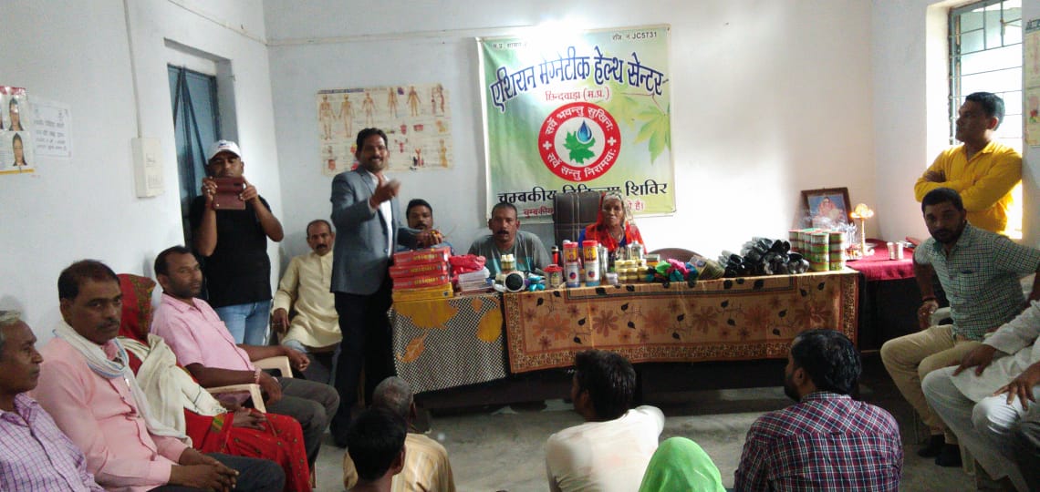 जिसमे शिविर में आने वाले मरीजों को बिना इंजेक्शन व बिना चिरफाड के बीमारियों का फ्री चुंबकीय पद्धति से इलाज किया जा रहा है ।