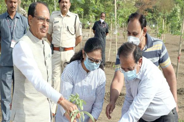 मुख्यमंत्री शिवराज सिंह चौहान ने सप्तपर्णी और कचनार के पौधे लगाए उजियारा फाउंडेशन ने भी किया पौधा-रोपण