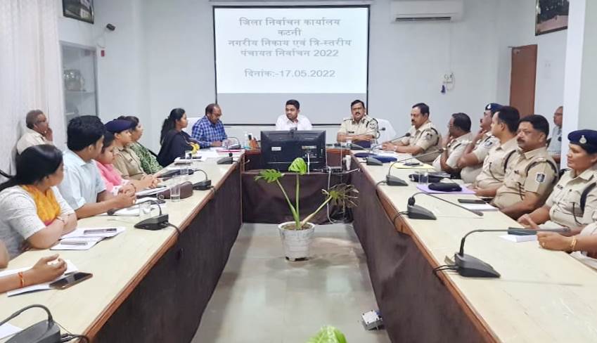 (कटनी) – नगरीय निकाय व पंचायत निर्वाचन की पूर्व तैयारी को लेकर मंगलवार को कलेक्ट्रेट सभागार में जिला निर्वाचन अधिकारी एवं कलेक्टर प्रियंक मिश्रा व पुलिस अधीक्षक सुनील कुमार जैन ने राजस्व, पुलिस विभाग के अधिकारियों की बैठक ली। बैठक में विभिन्न विषयों को लेकर चर्चा करते हुए अधिकारियों ने आवश्यक निर्देश प्रदान किए।