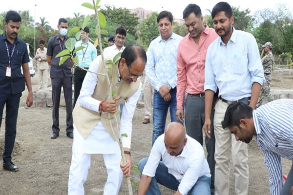 मुख्यमंत्री शिवराज सिंह चौहान ने बरगद, नीम और करंज के पौधे लगाए