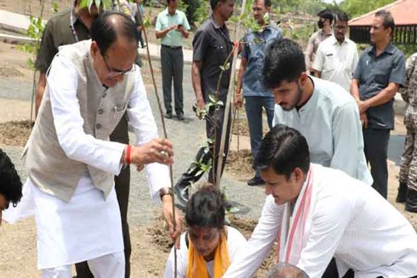 मुख्यमंत्री शिवराज सिंह चौहान ने बरगद, नीम और करंज के पौधे लगाए