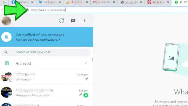 2. एक बार लॉग इन करने के बाद, आप यूआरएल टाइप करने के लिए उसी विंडो का उपयोग कर सकते हैं: http://wa.me/xxxxxxxxxx