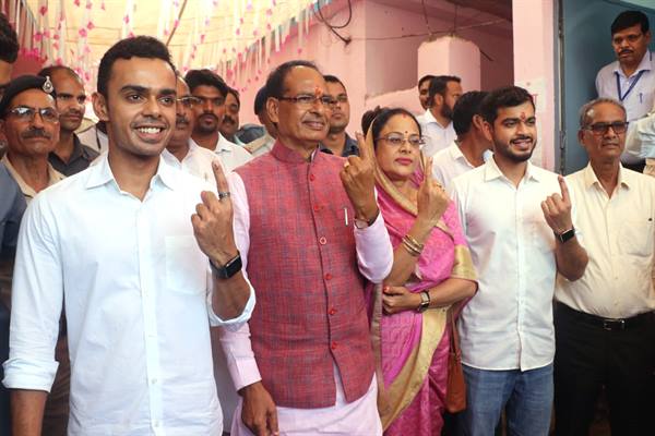 मुख्यमंत्री शिवराज सिंह चौहान ने सपरिवार गृह ग्राम जैत में मतदान किया