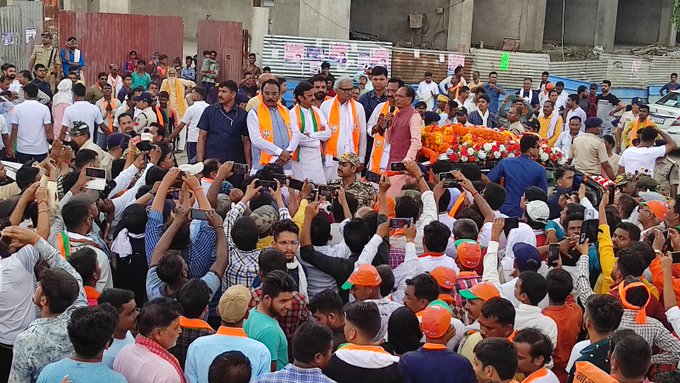 (रीवा) मध्य प्रदेश के मुख्यमंत्री शिवराज सिंह चौहान आज 4 दिनों में दूसरी बार रीवा पहुंचे. रोड शो की माध्यम से शहर के कई चौक चौराहों का भ्रमण किया. इस दौरान सीएम शिवराज सिंह चौहान का हजारों कार्यकर्ताओं ने जमकर स्वागत किया. साथ ही जगह-जगह उन पर पुष्प वर्षा की गई. मुख्यमंत्री चार दिन पहले 7 जुलाई को रीवा में आम जनसभा को संबोधित करते हुए भाजपा प्रत्याशियों के पक्ष में रीवा शहर की जनता से वोट मांगने की अपील की थी.