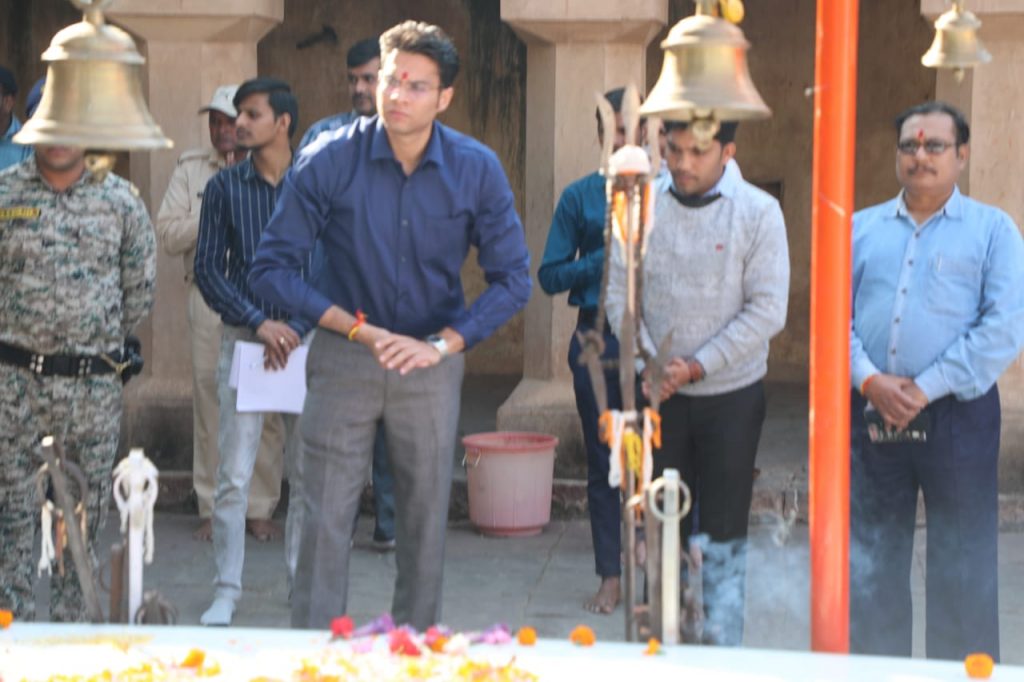 कलेक्टर श्री प्रसाद ने विजयराघवगढ़ के किले के भ्रमण के पूर्व प्रसिद्ध मां शारदा मंदिर पहुंचे और पूजन-अर्चन कर आशीर्वाद लिया। उन्होंने किला परिसर में स्थित पूज्य बरमबाबा की विधिवत पूजा की और पवित्र अखंड ज्योति का दर्शन किया। स्थानीय जनों और पुजारी ने कलेक्टर को मां शारदा की स्थापना और बरमबाबा के महात्म्य का वृतांत बताया। यहां की धर्मिक महत्ता से खासे प्रभावित कलेक्टर ने यहां धार्मिक पर्यटन को प्रोत्साहित करने के लिए सुविधाओं के विकास एवं विस्तार हेतु एसडीएम को निर्देशित किया।