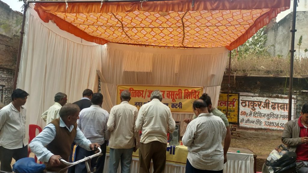 (कटनी) नगर पालिक निगम जनता महापौर श्रीमति प्रीति संजीव सूरी के मार्ग दर्शन में आमजनों को ननि के टेक्स सुविधा से जमा करने के लिए वार्ड दर वार्ड शिविर लगाकर नागरिकों को उनके वार्ड में ही संपत्ति कर जमा करने के अवसर दिए जाने से जहां नागरिकों के समय की बचत हो रही है वहीं ननि के टेक्स भी समय से जमा हो रहे हैं पिछले छः दिनों में कर संग्रहण की कुल राशि 9 लाख 4 हजार रूपये तक रही आयुक्त सत्येन्द्र सिंह धाकरे के निर्देश पर वार्ड क्रमांक 4 एवं 5 शिवनगर अग्रहरि तिराहा में आयोजित शिविर में संपत्ति कर वसूली में 27 भवनो से 54 हजार] वार्ड क्रमांक 6 गाटरघाट सब्जी मंडी में 41 भवनों से 62 हजार] वार्ड क्रमांक 8 शेर चौक जालपा वार्ड में 53 सम्पत्तिधारकों से 1 लाख 57 हजार] वार्ड क्रमांक 22 एवं 23 गर्ग चौराहा में 54 धारकों के माध्यम से 1 लाख 67 हजार] वार्ड क्रमांक 10 आदर्श कालोनी जयप्रकाश वार्ड में 45 करदाताओं के माध्यम से 1 लाख 75 हजार] वार्ड क्रमांक 19]20 एवं 35 एन के जे बजरिया में 143 सम्पत्ति धारकों के माध्यम से 2 लाख 89 हजार रूपये का राजस्व कर ननि कोष में संग्रहित हुआ। जागेश्वर प्रसाद पाठक] राजस्व अधिकारी
