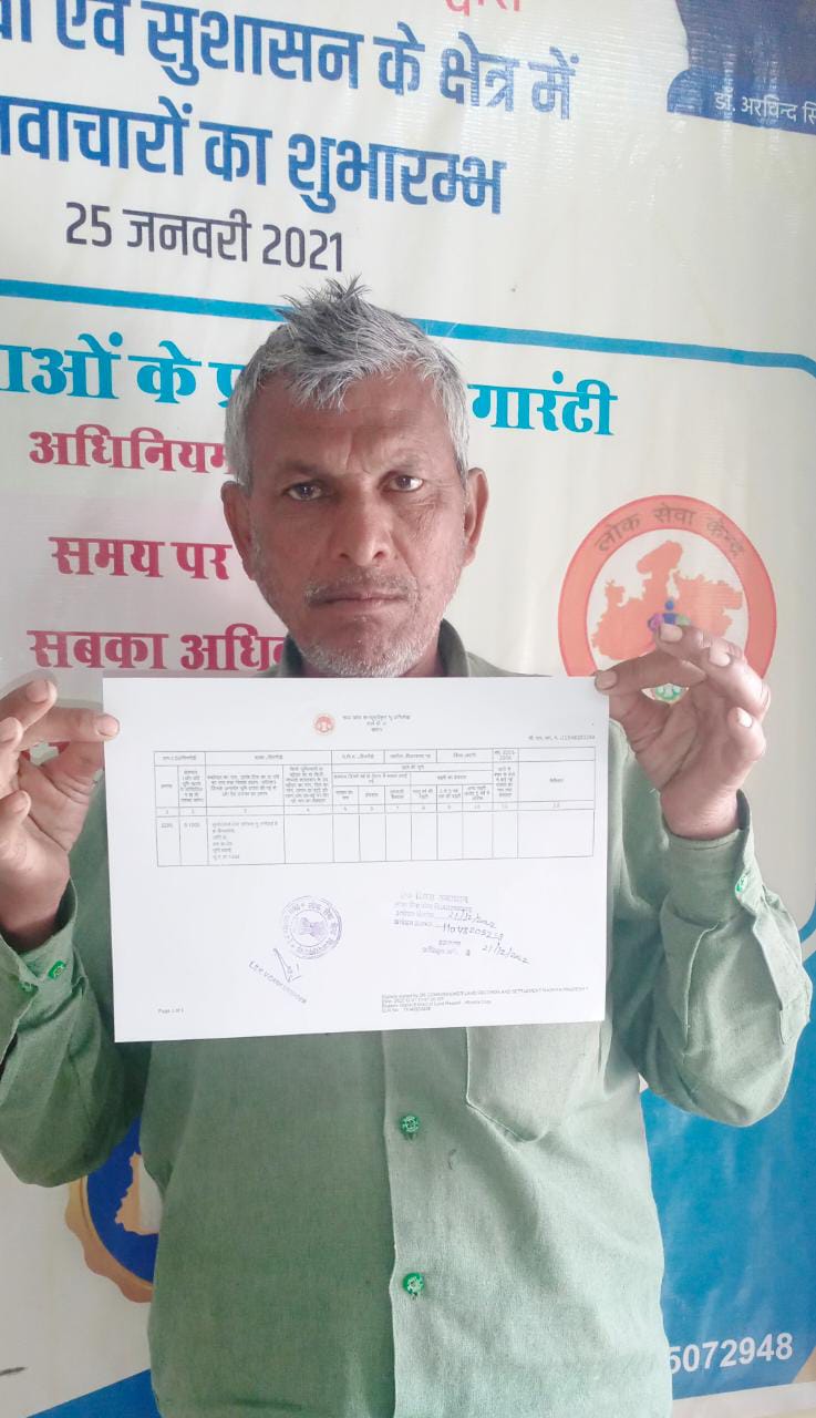 आवेदक जगदीश बर्मन पिता सुदर लाल बर्मन निवासी ग्राम रीठी को लोक सेवा केंद्र रीठी के माध्यम से तत्काल सेवा प्रदान कर भूमि ग्राम ममार का खसरा और नक्शा की प्रतिलिपि प्रदाय की गई। लोक सेवा केन्द्र विजयराघवगढ से शेख मुस्ताक ग्राम सिंगौडी को तत्काल खसरे नक्शे की नकल प्रदान की गई। लोक सेवा केन्द्र कटनी ग्रामीण में ग्राम बिछिया निवासी आवेदक बेड़ी लाल को 5 मिनट में फौती नामांतरण सेवा प्रदाय की जाकर की रसीद प्रदान की गई। तहसील ढीमरखेड़ा ग्राम घाना निवासी शिवलाल बर्मन को राजस्व विभाग की जिला स्तरीय रिकार्ड रूम अभिलेखों की नकल प्रदाय करने की रसीद प्रदान की गई तथा लोक सेवा केन्द्र से प्रदाय की जाने वाली सेवाओं की विस्तृत जनकारी प्रदान की गई।