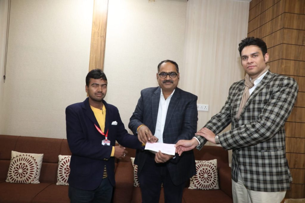 आयुक्त निःशक्तजन संदीप रजक ने दृष्टिबाधित दिव्यांग को दिया 20 हजार का चेक