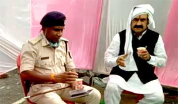 डॉ. मिश्रा ने पुलिसकर्मियों को पिलाया सत्तू