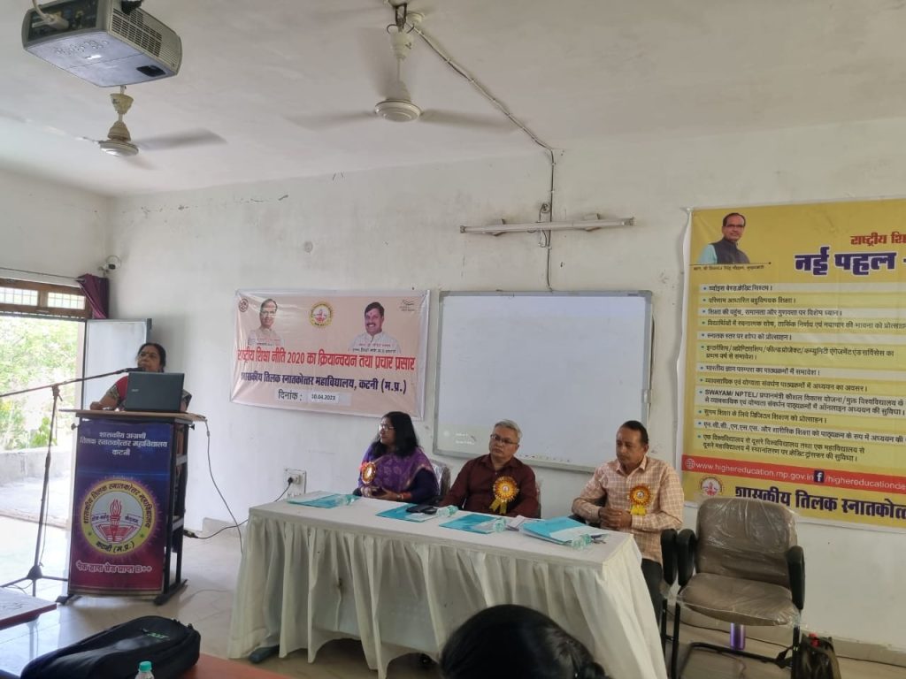 कार्यक्रम के अतिथियों द्वारा मां सरस्वती की प्रतिमा पर दीप प्रज्वलन एवं माल्यार्पण कर कार्यक्रम का शुभारंभ किया गया। महाविद्यालय के प्राचार्य डॉक्टर एसके खरे ने बताया कि राष्ट्रीय शिक्षा नीति 2020 में विद्यार्थियों को चयन आधारित क्रेडिट सिस्टम बहु विषयक शिक्षा, बहु आगमन एवं निर्गमन, परिणाम आधारित शिक्षा पाठ्यक्रम भारत की समृद्ध ज्ञान परंपरा युक्त समावेशी शिक्षा, आदि के बारे में विस्तार से विद्यार्थियों एवं शैक्षणिक स्टांफ को जानकारी प्रदान किए। एंबेसडर प्राध्यापक डॉक्टर चित्रा प्रभात प्राध्यापक राजनीति शास्त्र ने राष्ट्रीय शिक्षा नीति 2020 के बारे में जानकारी दी। तथा उन्होंने स्नातक उपाधि पाठ्यक्रम की संरचना जैसे एक मुख्य विषय मेजर, एक गौण विषय माइनर एक वैकल्पिक विषय कौशल संवर्धन पाठ्यक्रम अनिवार्यता वृद्धि पाठ्यक्रम इंटर्नशिप फील्ड प्रोजेक्ट आदि के बारे में विस्तार से जानकारी दें तथा उन्होंने बताया कि स्नातक स्तर पर चार वर्षीय पाठ्यक्रम चॉइस वेस्ट क्रेडिट सिस्टम द्वारा निर्धारित किया जाता है। तथा विद्यार्थियों को पास होने के लिए 35 से 39 अंक प्राप्त करने होते हैं।