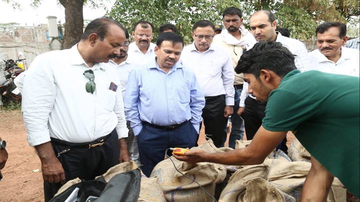 कमिश्नर खमतला का लाहोटी वेयर हाउस स्थित केंद्र भी पहुंचे और उपार्जन के तमाम बिंदुओं पर किसानों आदि से स्थिति जानी है। यहां किसानों के लिए बैठक, पेयजल आपूर्ति के अलावा चना – गुड़ के भण्डारित डिब्बे पाए जाने पर संतोष व्यक्त किया। संभाग आयुक्त श्री मालसिंह रायसेन जिले के विदिशा हाईवे के समीप स्थित मगदम लाजॉस्टिक उपार्जन केंद्र और सलामतपुर उपार्जन केंद्र का भी निरीक्षण किया यहां भंडारित किए जा रहे गेहूं के संबंध में जानकारी प्राप्त की । उन्होंने गेहूं की क्वालिटी, नमी की मात्रा की जांच-पड़ताल के साथ-साथ भुगतान के लिए क्या प्रबंध किए गए हैं। किसानों के लिए उपार्जन केंद्र पर क्या-क्या सुविधाएं मुहैया कराई गई हैं जा रही हैं, इत्यादि की जानकारियां प्राप्त की हैं।उन्होंने सभी केंद्रों पर सर्वेयर से गेहूं में नमी की मात्रा की जांच-पड़ताल की तथा सामने ही प्रायोगिक जानकारी ली।