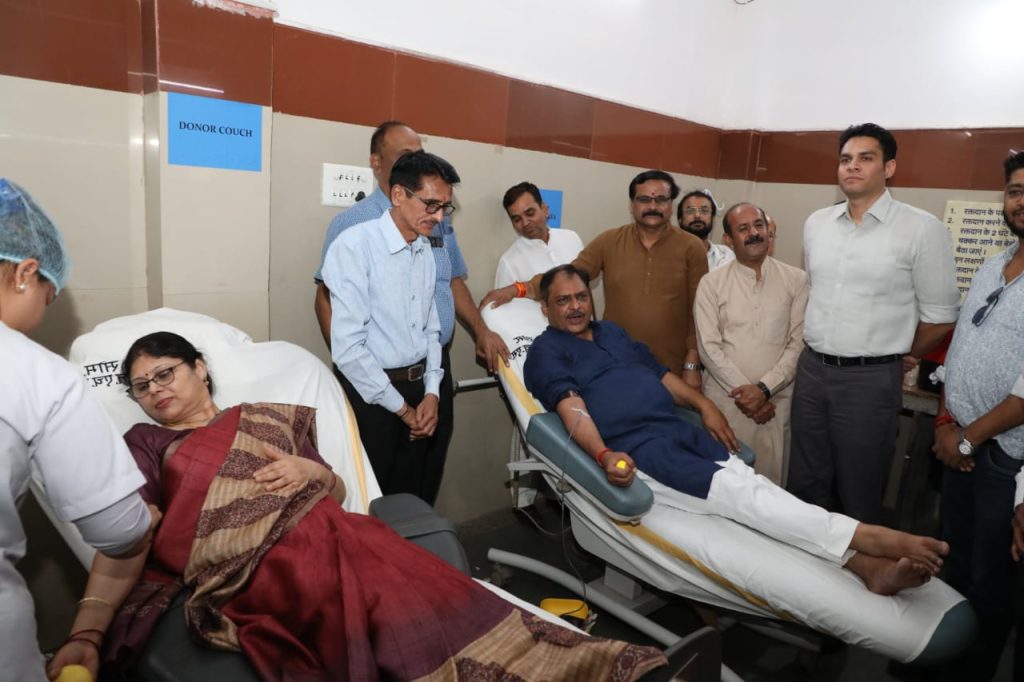 जिला चिकित्सालय में आयोजित रक्तदान शिविर मे विधायक संदीप जायसवाल ने किया रक्तदान
