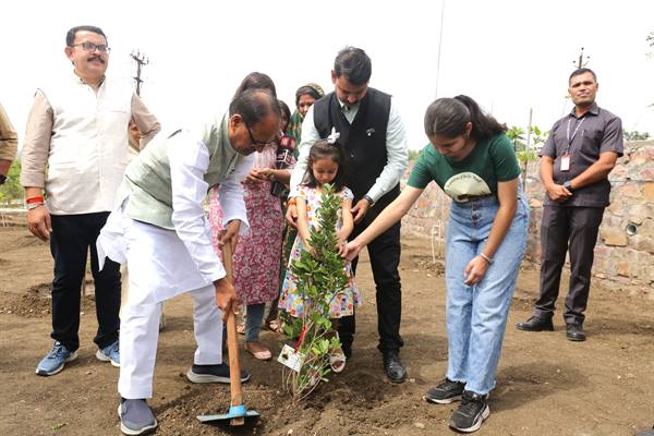 मुख्यमंत्री शिवराज सिंह चौहान ने जामुन, आम और सतपर्णी के पौधे लगाए