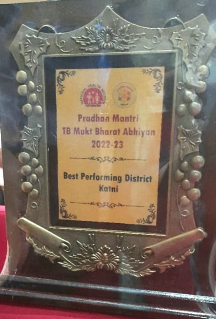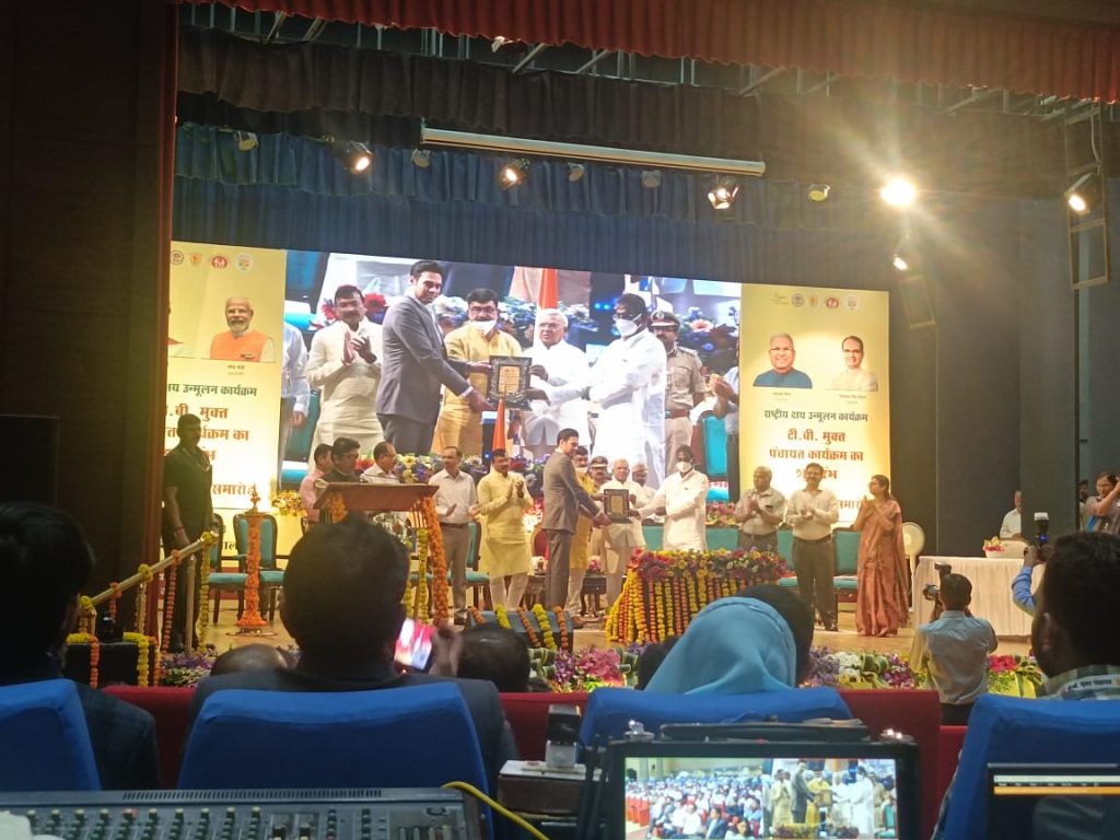 राज्यपाल ने प्रधानमंत्री टी.बी. मुक्त भारत अभियान के लिए कटनी जिले को बेस्ट परफार्मिंग जिले के पुरस्कार से नवाजा