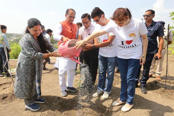 मुख्यमंत्री शिवराज सिंह चौहान ने मौलश्री, आँवला और आम के पौधे लगाए
