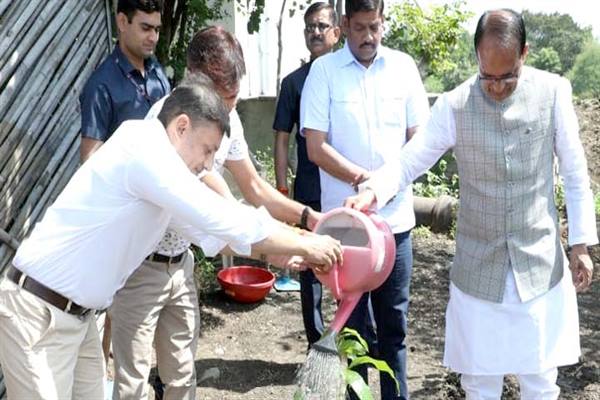 मुख्यमंत्री शिवराज सिंह चौहान के साथ सामाजिक कार्यकर्ताओं ने पौध-रोपण किया