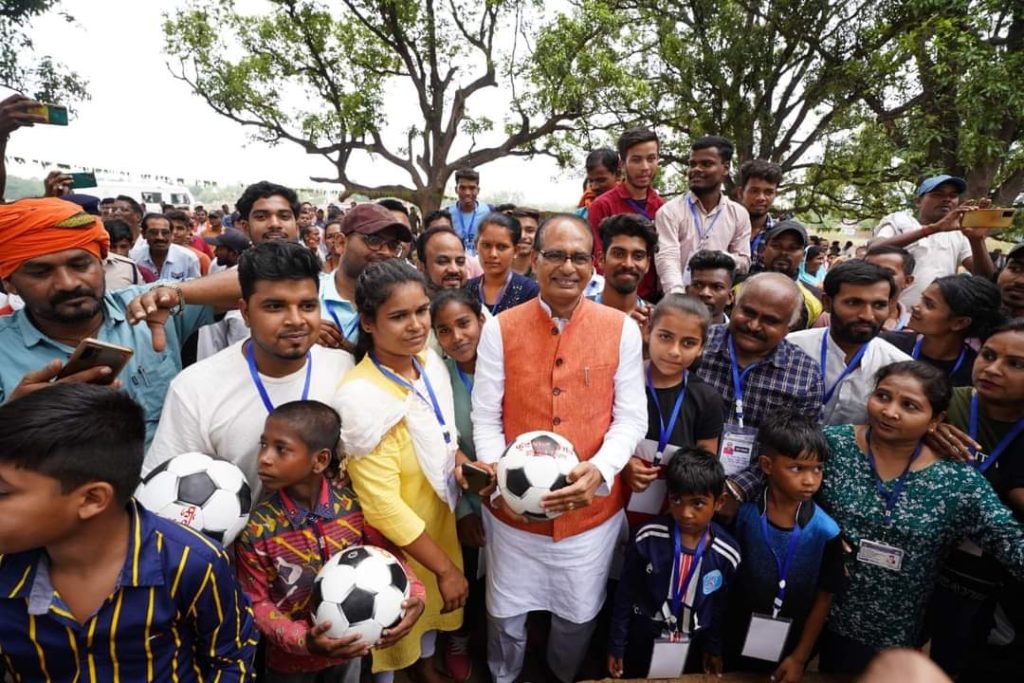 फुटबॉल खेलते बच्चों के बीच मुख्यमंत्री