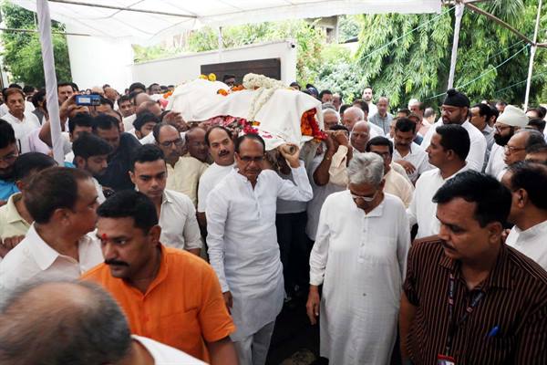 मुख्यमंत्री श्री शिवराज सिंह चौहान ने कलार समाज के राष्ट्रीय अध्यक्ष श्री दिलीप सूर्यवंशी और उद्योगपति श्री दीपक सूर्यवंशी की मां श्रीमती जानकी देवी सूर्यवंशी के निधन पर शोक व्यक्त किया। मुख्यमंत्री श्री चौहान ने अरेरा कॉलोनी स्थित उनके निवास पहुँचकर अंतिम दर्शन किए तथा श्रद्धांजलि अर्पित की। मुख्यमंत्री श्री चौहान श्रद्धेय जानकी देवी की अंतिम यात्रा और भदभदा विश्राम घाट पर उनके अंतिम संस्कार में भी शामिल हुए। मुख्यमंत्री श्री चौहान ने परमपिता परमात्मा से दिवंगत आत्मा को अपने श्री चरणों में स्थान देने तथा परिजनों को यह दुख सहन करने की क्षमता प्रदान करने की प्रार्थना की है।