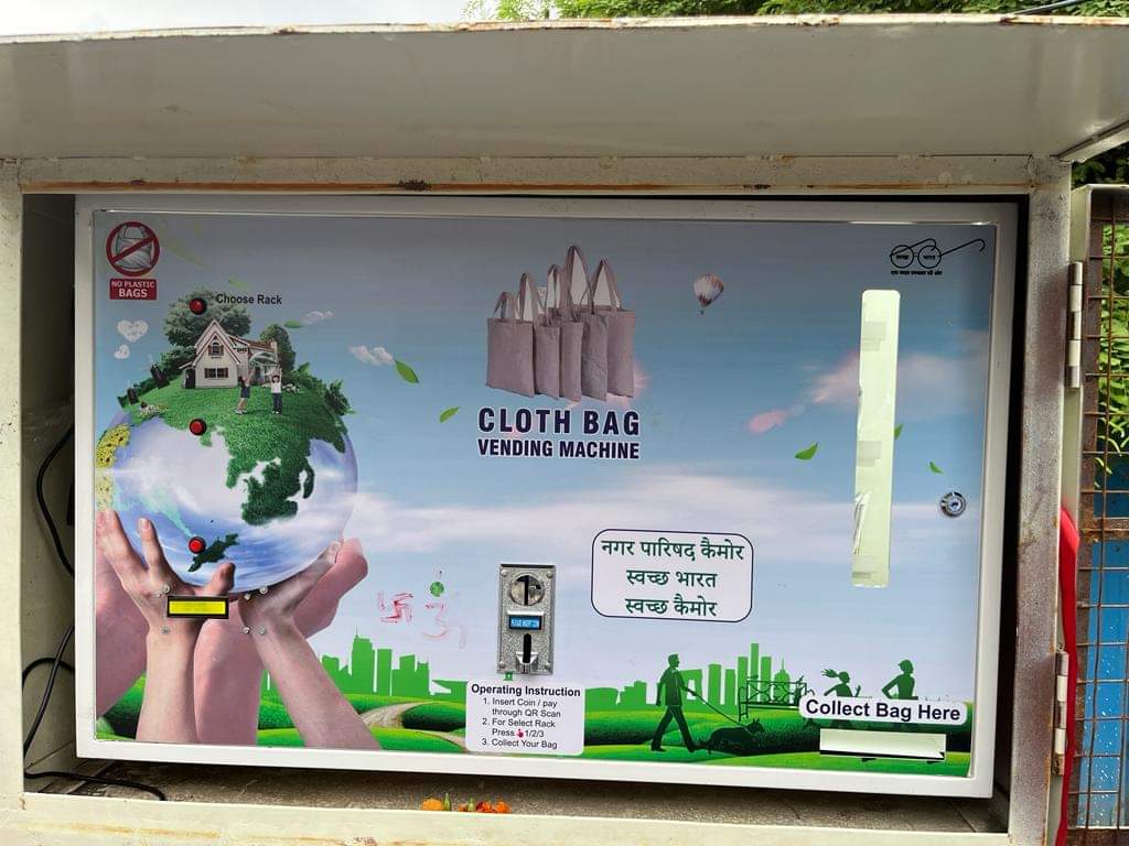 नगर परिषद कैमोर में क्लॉथ बैग वैंडिंग मशीन से ₹10 मे मिलेगा कपड़े का थैला
