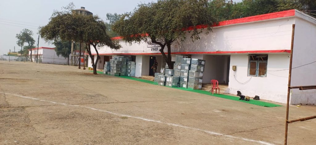 स्ट्रांग रूम के बाहर चौबीसों घंटे सशस्त्र बल तैनात हैं।पूरे कृषि उपज मंडी परिसर के चप्पे-चप्पे पर सुरक्षा बल मुस्तैद है।
