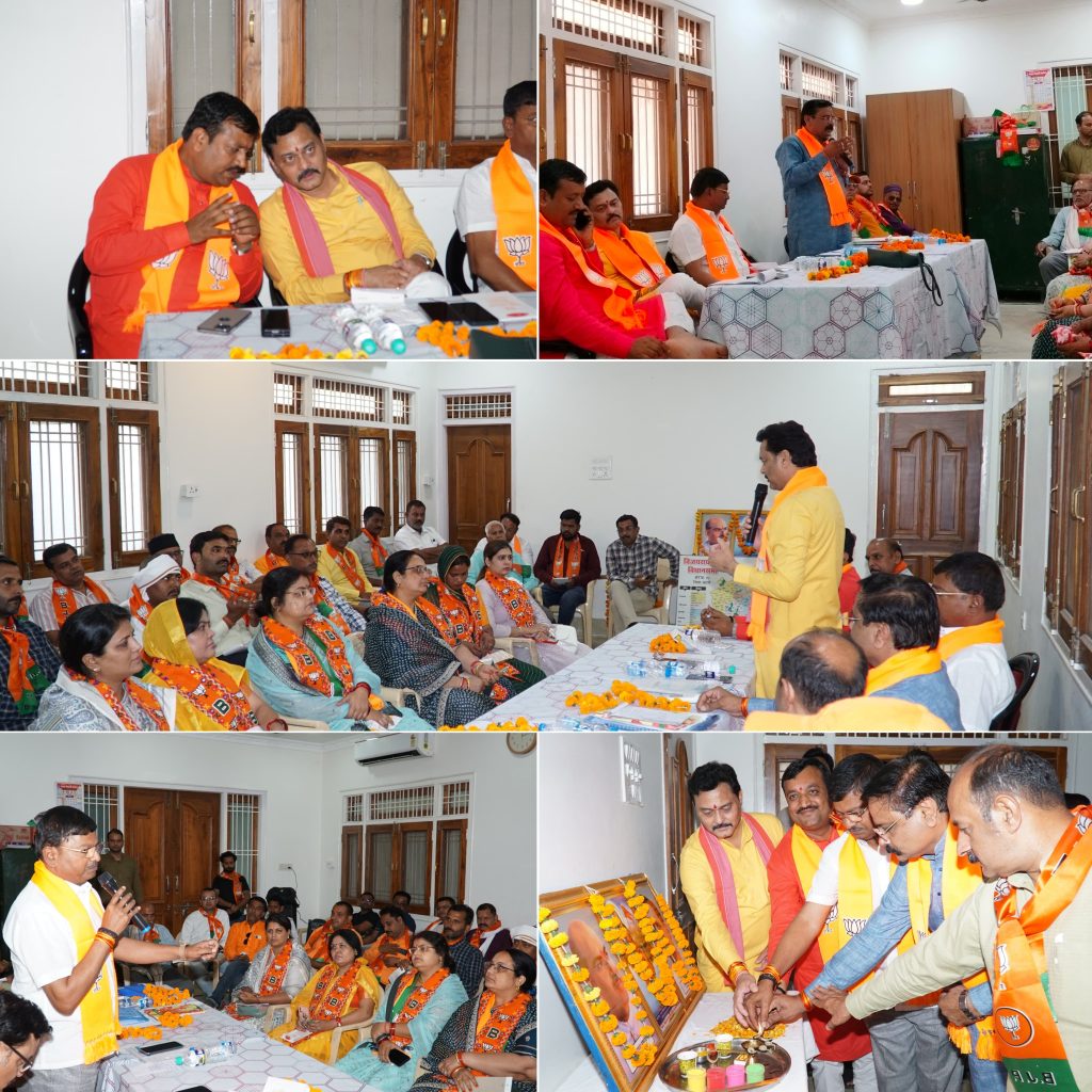 (विजयराघवगढ़) विजयराघवगढ़ विधानसभा के भाजपा चुनाव कार्यालय पर विधानसभा स्तरीय लोकसभा चुनाव संचालन एवं प्रबंध समिति की बैठक संपन्न हुई। बैठक में लोकसभा प्रभारी सतना महापौर योगेश ताम्रकार, लोकसभा संयोजक सदानंद गौतम, जिलाध्यक्ष दीपक सोनी टंडन, सहसंयोजक पीतांबर टोपनानी, महामंत्री सतीश तिवारी की उपस्थिति में संपन्न हुई। जिलाध्यक्ष दीपक सोनी, लोकसभा संयोजक सदानंद गौतम, लोकसभा प्रभारी योगेश ताम्रकार, विधायक संजय पाठक ने उपस्थिति पदाधिकारीयों से संवाद करते हुए कहा कि लोकसभा चुनाव में बड़ी जीत के लिए पदाधिकारी कार्यकर्ताओं एवं बूथ समिति के साथ कार्य करते हुए अपने अपने बूथ पर सक्रियता बढ़ा दें। सभी को अपने बूथ पर विजय दिलाने की जिम्मेदारी निभानी है। लाभार्थी जनसंपर्क अभियान के माध्यम से चुनाव से पहले केंद्र और राज्य सरकार की योजना से लगभग 25 करोड़ से अधिक भारतीय गरीबी से बाहर आए है उज्जवला, जन-धन, आवास, शौचालय, हर घर नल, हर घर जल, बिजली, प्रधानमंत्री कौशल विकास योजना, किसान सम्मान निधि समेत कई अन्य योजनाओं का लाभ मिला है । हम सब को प्रयास करके चुनाव में हमारे प्रत्याशी विष्णु दत्त शर्मा जी को विधानसभा से 1 लाख 50 हजार से अधिक वोट दिलाने है । हम यदि प्रण लेलें तो यह लक्ष्य अवश्य आसानी से पूरा होगा। बैठक में आभार व्यक्त करते हुए श्री पीतांबर टोपनानी ने कहा कि कार्यकर्ताओं के द्वारा सभी बूथो पर किए गए प्रयास से विधानसभा के सभी 280 बूथों पर बड़ी विजय होगी ।