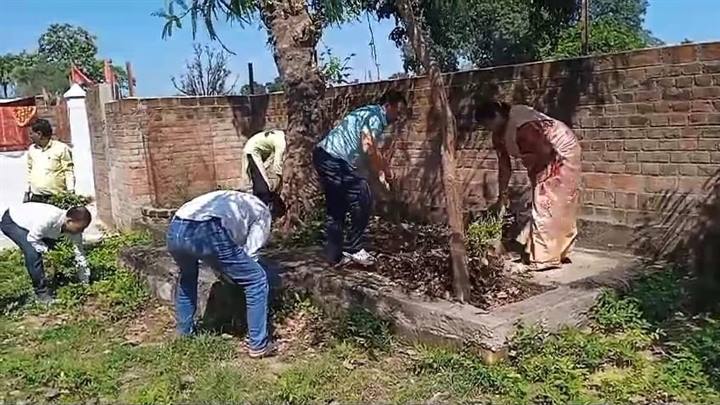 नगरिया मंदिर ब्यौहारी में लोगों ने श्रमदान कर स्वच्छता की ली शपथ