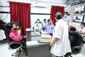 कटनी – कलेक्टर शशिभूषण सिंह ने जिला अस्पताल के निरीक्षण के दौरान सिविल सर्जन कक्ष में सभी चिकित्सक एवं कोविड केयर के पैरामेडिकल स्टाफ की बैठक लेकर किल कोरोना अभियान के फॉलोअप की कार्यवाही तथा जिले में पाये गये कोरोना पॉजीटिव मरीजों के उपचार सेवाओं एवं केस हिस्ट्री की समीक्षा की। चिकित्सक और पैरामेडिकल स्टाफ का हौसला अफजाई करते हुये कलेक्टर ने कहा कि सब बहुत अच्छा कार्य कर रहे हैं। आप सबके सम्मिलित प्रयासों से जिले में कोरोना को हराने में निश्चित ही कामयाब होंगे। मुख्य चिकित्सा अधिकारी डॉ0 एस0के0 निगम, सिविल सर्जन डॉ0 यशवंत वर्मा सहित जिला चिकित्सालय के सभी चिकित्सक उपस्थित थे।