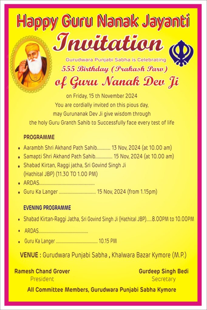Guru Nanak Jayanti : गुरुद्वारा पंजाबी सभा कैमोर द्वारा गुरुनानक जयंती 15 नवंबर को आयोजित होगा भव्य कार्यक्रम