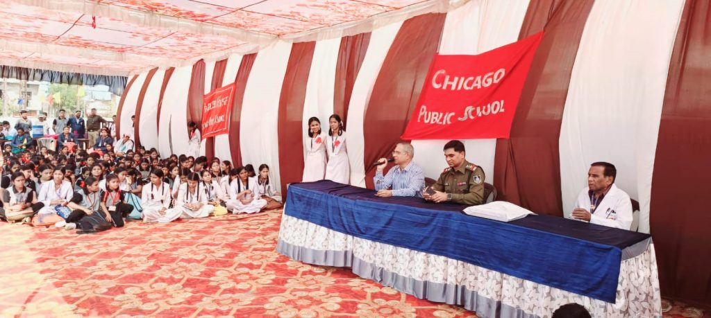 थाना प्रभारी माधवनगर ने शिकागो शाला के वार्षिकोत्सव में यातायात नियमों पर किया संवाद