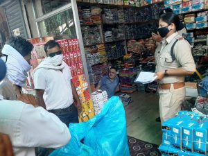 कटनी – कलेक्टर शशिभूषण सिंह के निर्देश पर जिले में कोरोना बीमारी (कोविड-19) के नियंत्रण के लिए राजस्व, पुलिस व नगर निगम के अधिकारियों ने गुरुवार को गोल बाजार क्षेत्र में संचालित व्यापारिक प्रतिष्ठानों, दुकानों का निरीक्षण कर कोरोना नियंत्रण के पालन हेतु मास्क लगाने एवं सोशल डिस्टेंसिंग के संबंध में समझाईश दी। निरीक्षण के दौरान बिना मास्क लगाये पाये जाने पर संबंधितों के विरुद्ध जुर्मान की कार्यवाही भी संयुक्त दल द्वारा की गई। वहीं माधवनगर थाना क्षेत्र में भी बिना मास्क व सोशल डिस्टेन्स का पालन नहीं करने पर जुर्माना लगाते हुये समझाईश दी गई है। मौके पर तहसीलदार मुनौव्वर खान सहित पुलिस व नगर निगम का अमला उपस्थित था।
