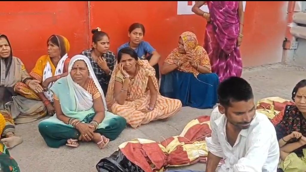 ठेका श्रमिक की मौत, परिजनों ने शव को कम्पनी गेट पर रखकर दिया धरना