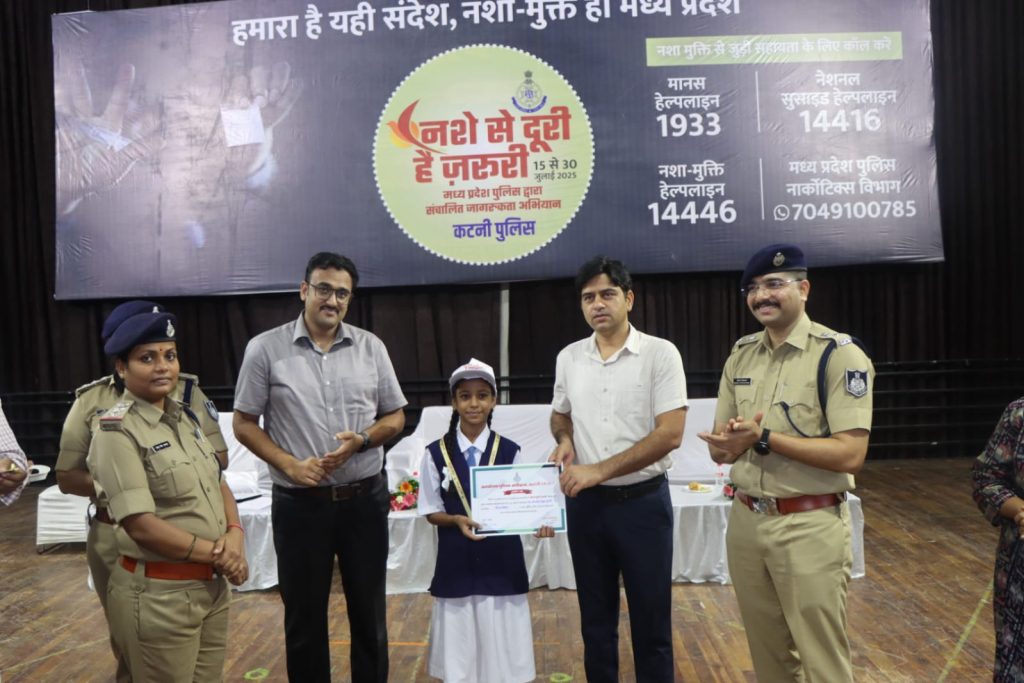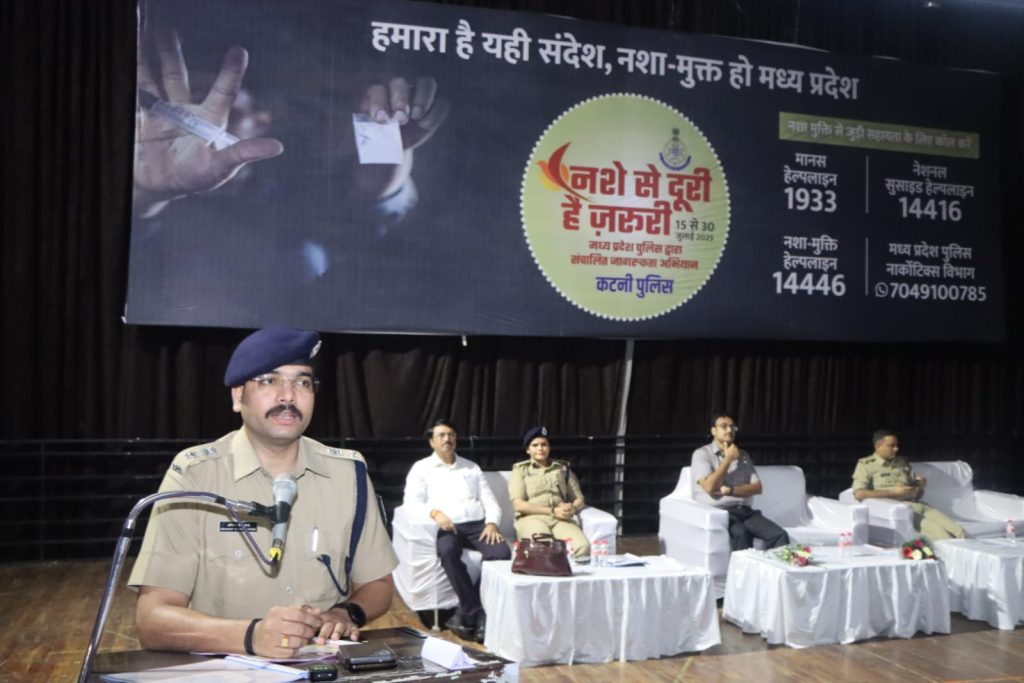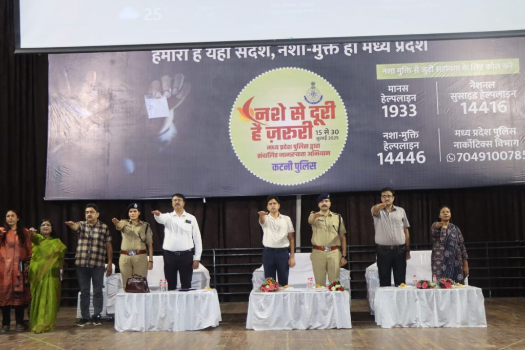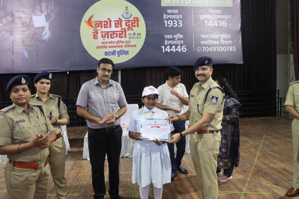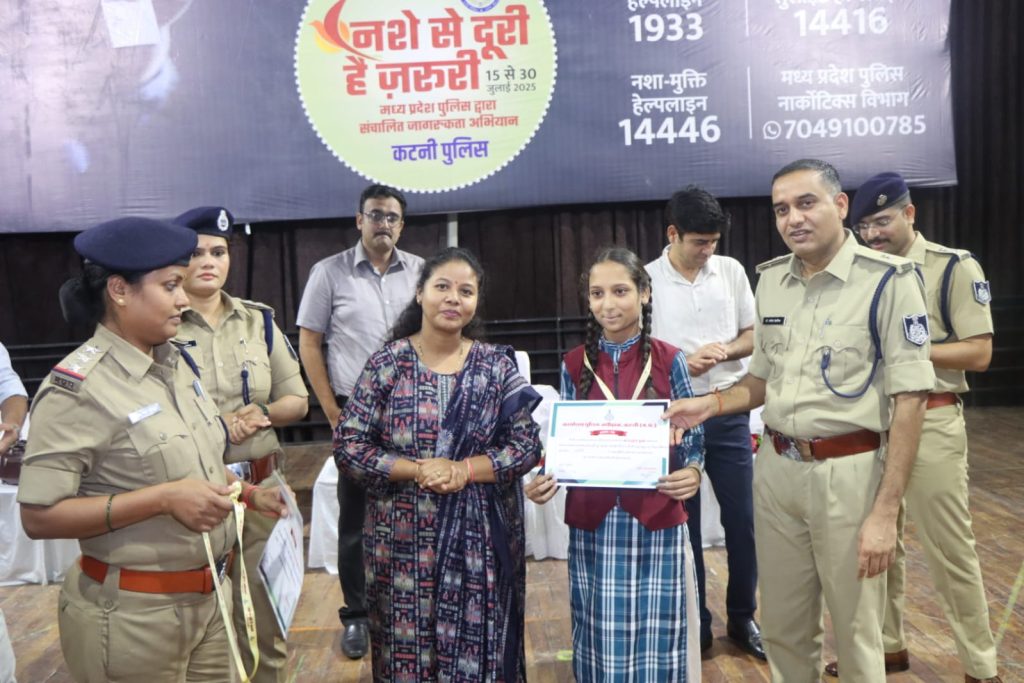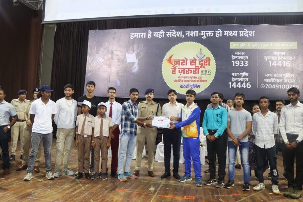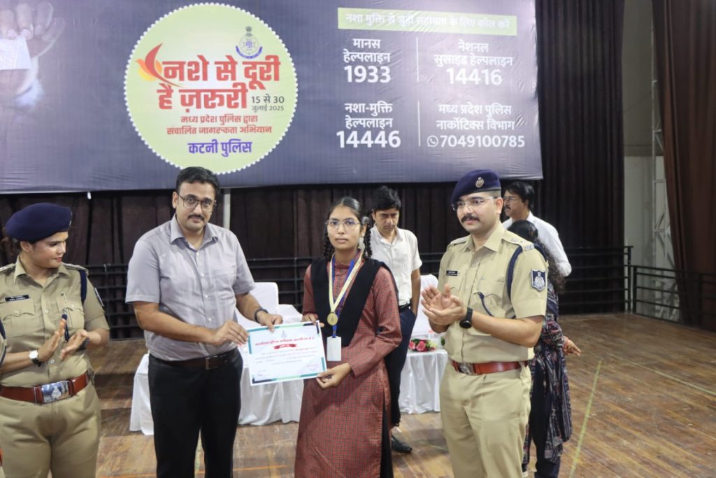 (कटनी) मध्यप्रदेश शासन के मुख्यमंत्री डॉ. मोहन यादव की प्रेरणा एवं पुलिस महानिदेशक कैलाश मकवाना के मार्गदर्शन में पूरे प्रदेश में चलाए गए विशेष जन-जागरूकता अभियान “नशे से दूरी है जरूरी” का समापन समारोह दिनांक 30 जुलाई 2025 को कटनी जिला मुख्यालय स्थित ऑडिटोरियम में गरिमामय वातावरण में सम्पन्न हुआ।