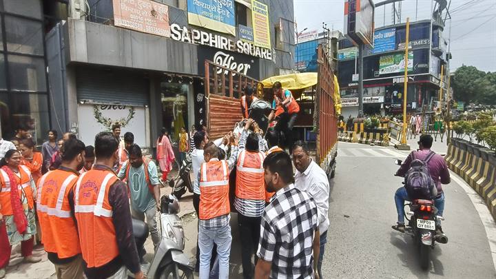 (इन्दौर) कलेक्टर श्री आशीष सिंह एवं आयुक्त नगर निगम श्री शिवम वर्मा के निर्देशानुसार शहर में यातायात व्यवस्था को सुदृढ़ बनाने, सड़कों को अतिक्रमण मुक्त करने एवं आमजन की सुगम आवाजाही सुनिश्चित करने हेतु आज निगम प्रशासन, ट्रैफिक पुलिस एवं जिला प्रशासन की संयुक्त टीम द्वारा विशेष कार्रवाई की गई। यह कार्रवाई अपर आयुक्त श्री रोहित सिसोनिया, एसडीएम श्री सोनी, सहायक अधिकारी श्री बबलू कल्याण, रिमूवल ट्रैफिक विभाग तथा नगर निगम की रिमूवल टीम के नेतृत्व में टावर चौराहा से अग्रसेन चौराहा तक की गई। इस दौरान सड़क किनारे अवैध रूप से खड़े वाहनों, अतिक्रमण सामग्री व व्यवधान उत्पन्न करने वाले संसाधनों को हटाया गया। कार्यवाही के दौरान निगम व ट्रैफिक विभाग की संयुक्त टीम द्वारा एक ट्रक अवैध रूप से सड़क पर रखी सामग्री जप्त की गई। इसके अतिरिक्त यातायात नियमों का उल्लंघन करने वाले वाहनों के विरुद्ध चालानी कार्रवाई की गई। इस दौरान 12 चार पहिया वाहनों और 28 दोपहिया वाहनों के विरूद्ध 20 हजार रूपये की चालानी कार्रवाई की गई तथा 48 दोपहिया वाहनों को जप्त कर महूनाका ट्रैफिक थाने में जमा कराया गया। इस संयुक्त कार्यवाही का उद्देश्य न केवल यातायात व्यवस्था को बेहतर बनाना है, बल्कि आम नागरिकों को यह संदेश देना भी है कि नियमों का उल्लंघन करने पर सख्त कार्रवाई की जाएगी। नागरिकों से अपील की गई है कि वे सार्वजनिक स्थलों पर अतिक्रमण न करें तथा अपने वाहन निर्धारित पार्किंग स्थलों पर ही खड़े करें।