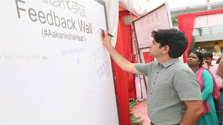 कलेक्टर श्री यादव ने आकांक्षा हाट स्थल बस स्टैण्ड स्थित ऑडिटोरियम हाल परिसर में हुनर की छाप और फीडबैक वाल में हस्ताक्षर किया और प्रदर्शन स्टॉलों में लगाये गये स्थानीय उत्पादों की सराहना की। वहीं पुलिस अधीक्षक श्री विश्वकर्मा ने प्रदर्शित लोकल उत्पादों की तारीफ करते हुये लिखा कि इससे स्थानीय स्तर पर लोगों को रोजगार मिलेगा।