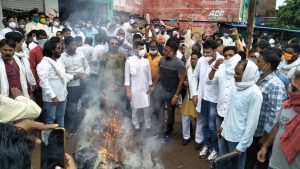 बक्सवाहा में कांग्रेस और बीजेपी आमने सामने कैबिनेट मंत्री दर्जा प्राप्त प्रदुम सिंह लोधी का कांग्रेस ने फूंका पुतला