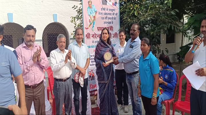 (भिण्ड) मध्यप्रदेश शासन खेल और युवा कल्याण विभाग के निर्देशानुसार कलेक्टर श्री संजीव श्रीवास्तव एवं पुलिस अधीक्षक डॉ. असित यादव के मार्गदर्शन तथा मुख्य कार्यपालन अधिकारी जिला पंचायत भिण्ड श्री सुनील दुबे के नेतृत्व में सीएम राईज स्कूल भिण्ड में जिला पंचायत भिण्ड अध्यक्ष श्रीमती कामना सिंह भदौरिया के मुख्य आतिथ्य में “राष्ट्रीय खेल दिवस 2025” मनाया गया। जिला पंचायत भिण्ड अध्यक्ष श्रीमती भदौरिया के द्वारा सर्वप्रथम मेजर ध्यानचंद की प्रतिमा पर माल्यार्पण कर कार्यक्रम का शुभारंभ किया। जिला पंचायत भिण्ड अध्यक्ष श्रीमती कामना सिंह भदौरिया ने खिलाडियों एवं अन्य लोगों को संबोधित करते हुए सभी से आव्हान किया कि हमें अपने शरीर को स्वस्थ रखने के लिये प्रतिदिन 1 घंटा फिटनेस के लिये जरूर देना चाहिए, जिससे हम स्वस्थ रहेंगे और अपने सारे काम ऊर्जा के साथ समय पर पूर्ण करेंगे और उपस्थित खिलाडियों एवं अन्य लोगों को फिटनेस की शपथ दिलाई गई।