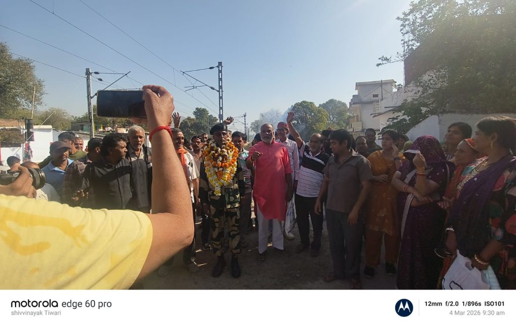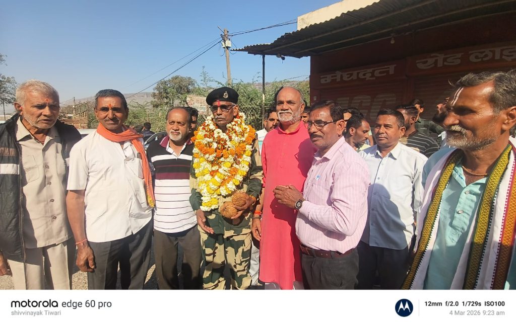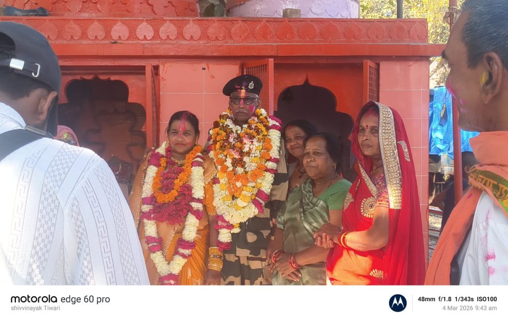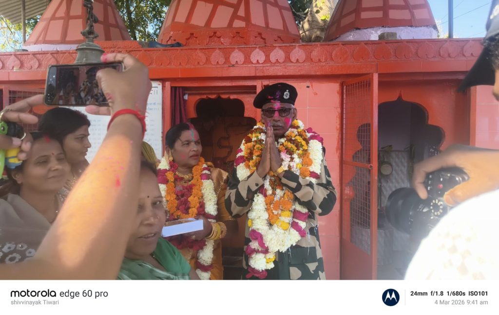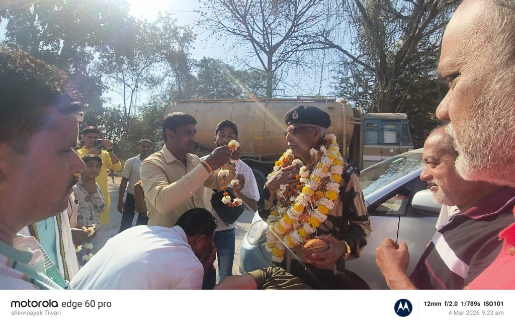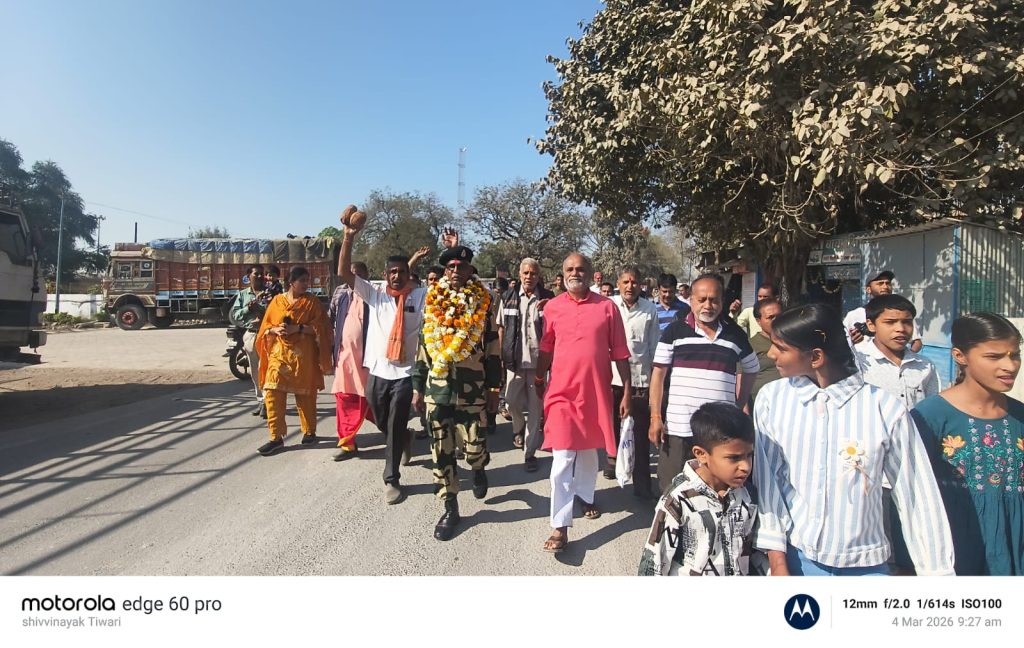 BSF के वीर सपूत सूबेदार वीरेंद्र द्विवेदी का कैमोर में ऐतिहासिक स्वागत, 40 वर्षों की गौरवशाली सेवा के बाद होली पर घर वापसी
