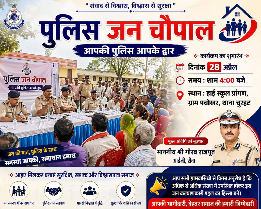 पचोखर में 28 अप्रैल को लगेगी पुलिस जन चौपाल, आईजी रीवा करेंगे शुभारंभ